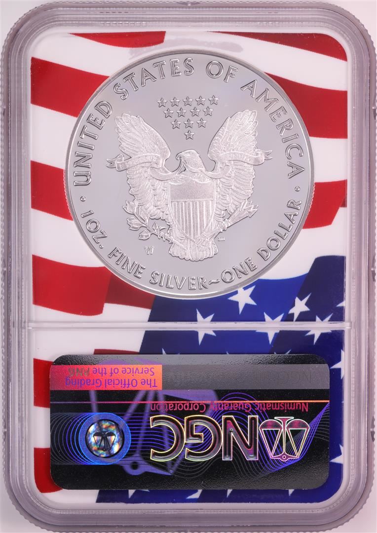 One 2019-W $1 Proof American Silver Eagle Coin NGC PF70 Ultra Cameo Congratulations Flag. NGC Certified.