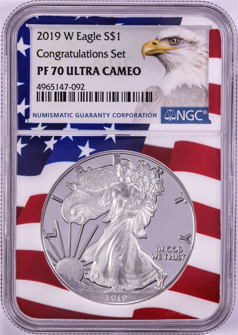 2019-W $1 Proof American Silver Eagle Coin NGC PF70 Ultra Cameo Congratulations Flag