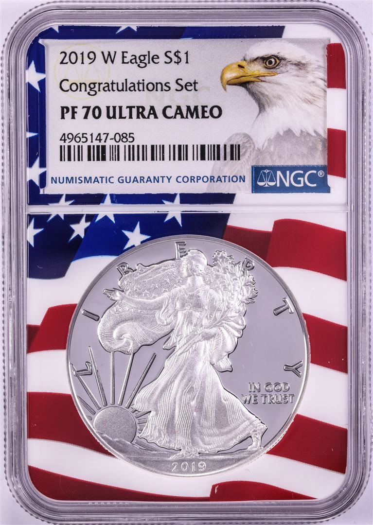 2019-W $1 Proof American Silver Eagle Coin NGC PF70 Ultra Cameo Congratulations Flag