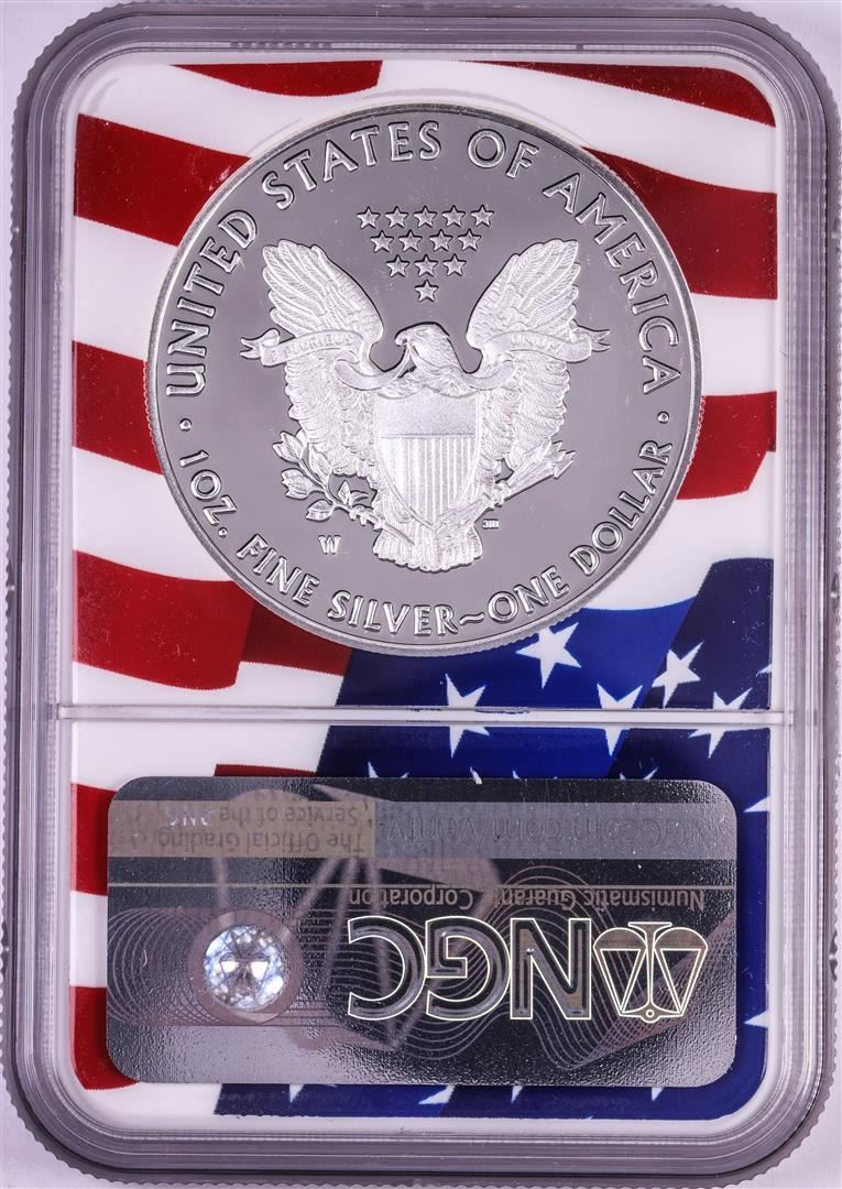One 2019-W $1 Proof American Silver Eagle Coin NGC PF70 Ultra Cameo Congratulations Flag. NGC Certified.