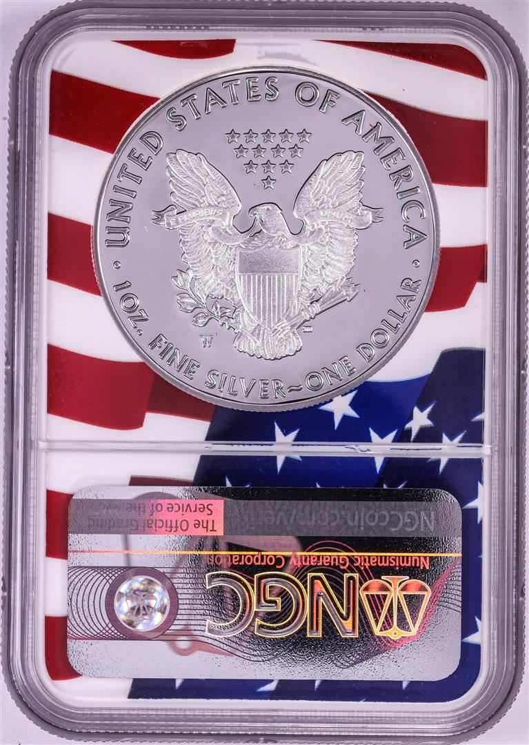 One 2019-W $1 Proof American Silver Eagle Coin NGC PF70 Ultra Cameo Congratulations Flag. NGC Certified.