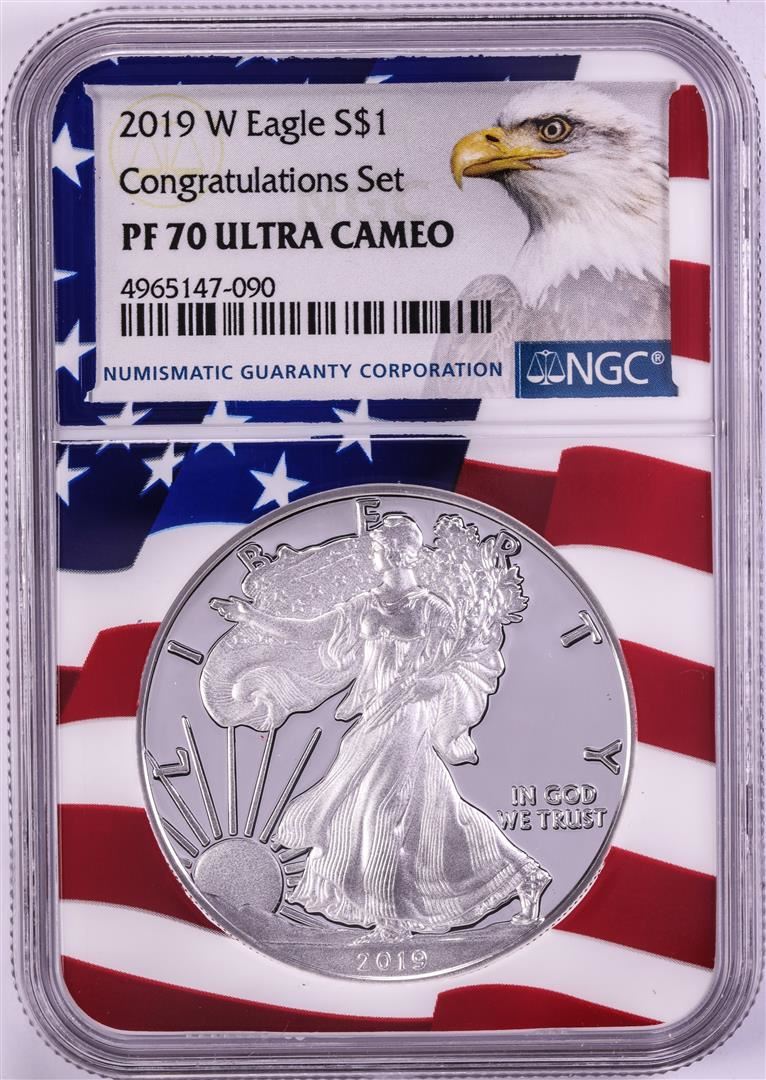 2019-W $1 Proof American Silver Eagle Coin NGC PF70 Ultra Cameo Congratulations Flag