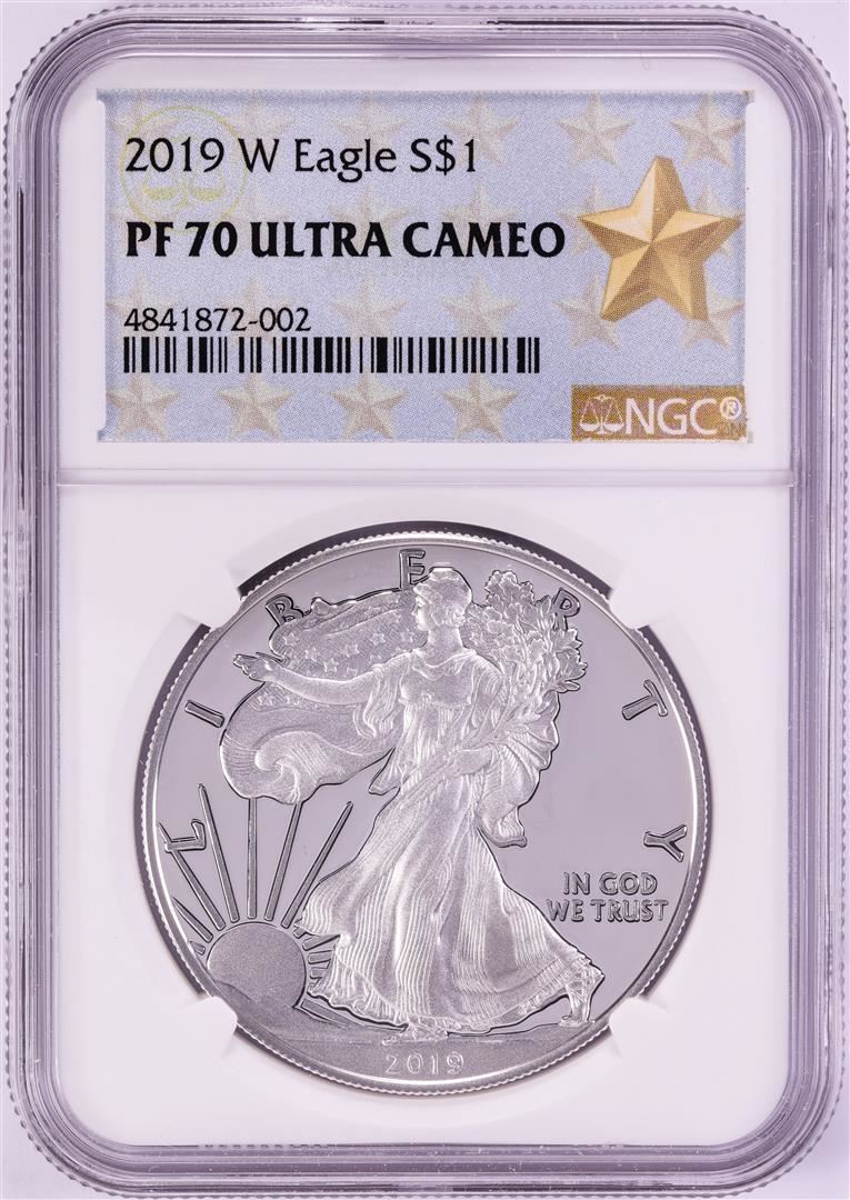 One 2019-W $1 Proof American Silver Eagle Coin NGC PF70 Ultra Cameo. NGC Certified.
