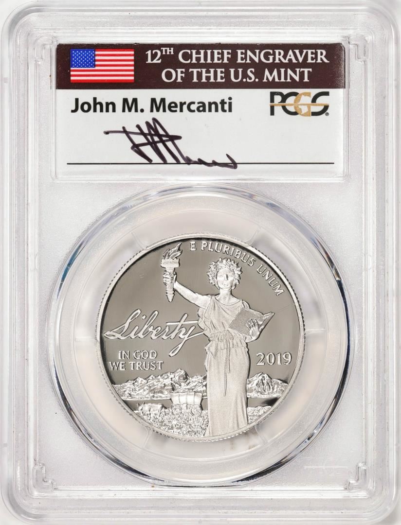 One 2019-W $100 American Platinum Eagle Coin PCGS PR70DCAM FDOI John Mercanti Signature. PCGS Graded.