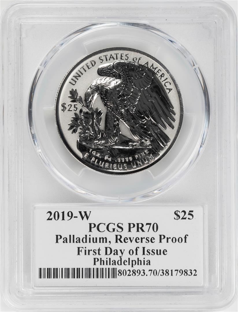 One 2019-W $25 Rev. Proof Palladium Eagle PCGS PR70 First Day Issue Jim Licaretz Signature. PCGS Graded.