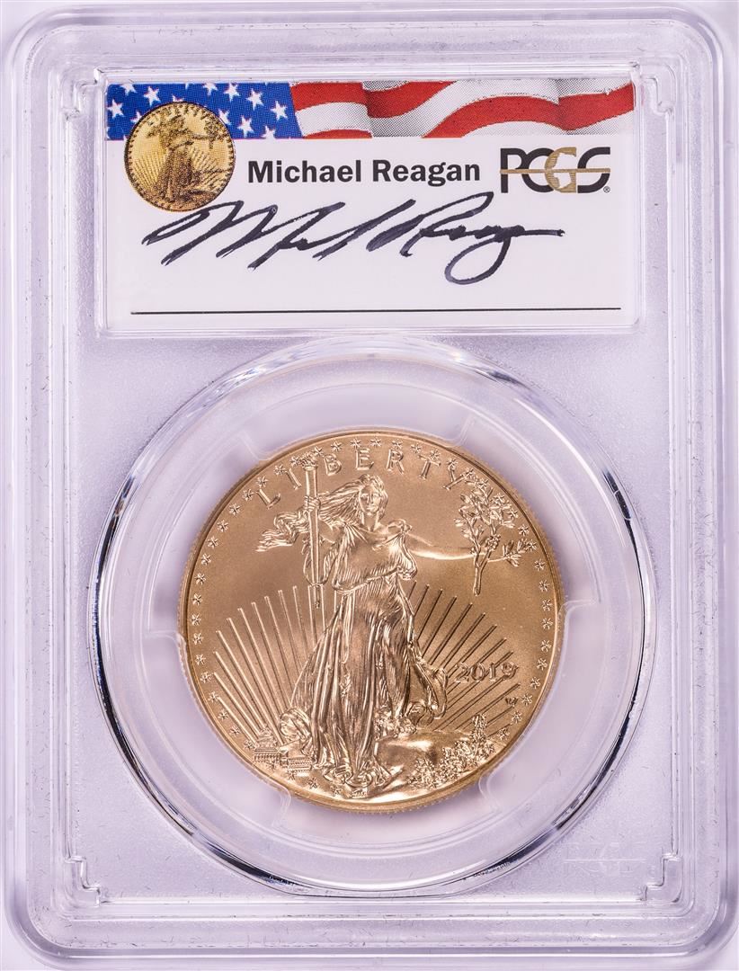 One 2019-W $50 Burnished American Gold Eagle PCGS SP70 First Strike M. Reagan Signature. PCGS Graded.
