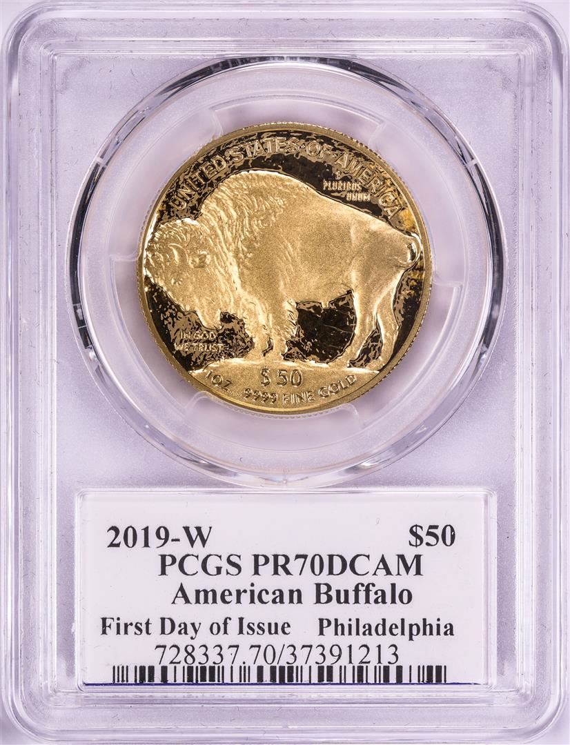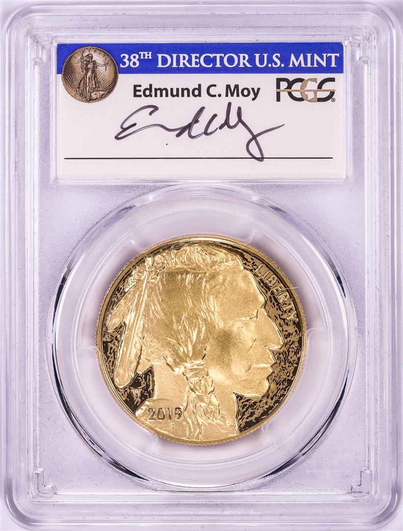 One 2019-W $50 Proof American Buffalo Gold Coin PCGS PR70DCAM FDOI Edmund Moy Signature. PCGS Graded.