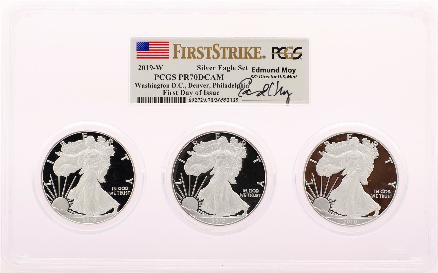 2019-W Proof Silver Eagle Location Set PCGS PR70DCAM First Strike Edmund Moy Signature