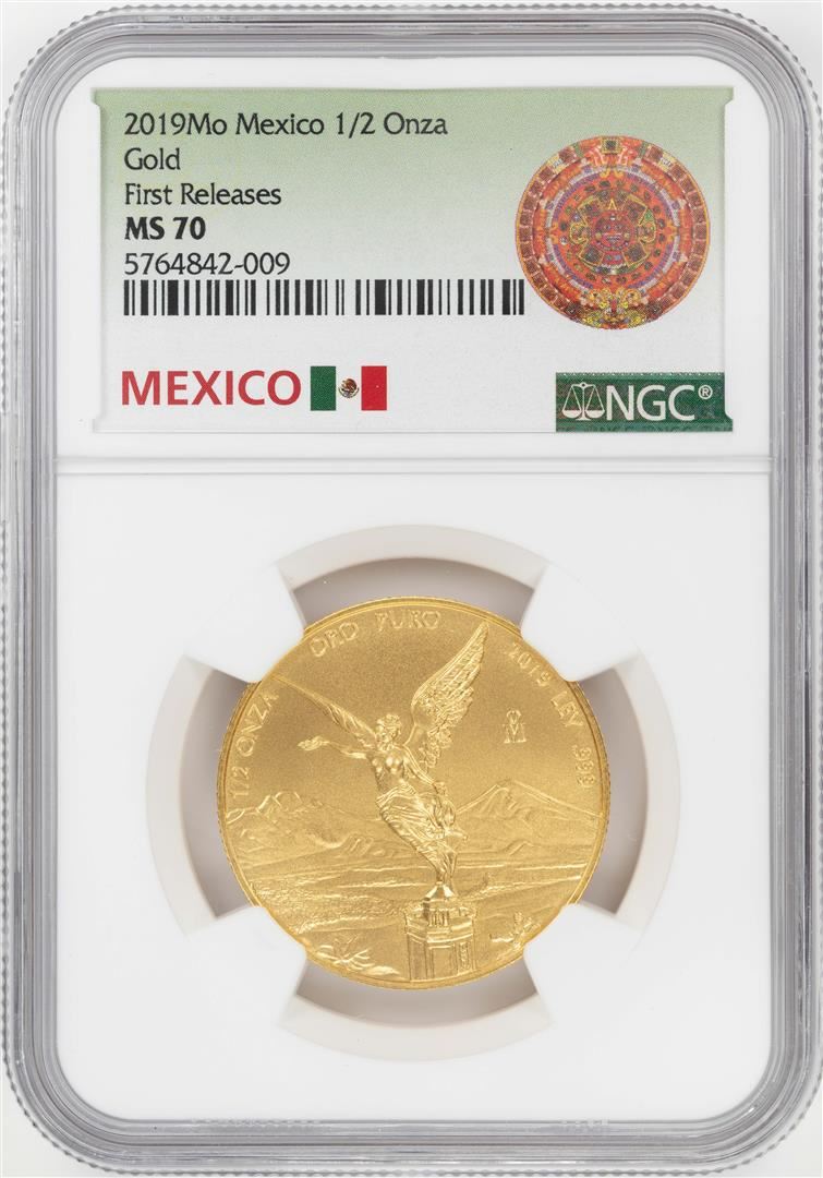 One 2019Mo Mexico 1/2 Onza Gold Coin NGC MS70 Early Releases. NGC Certified.