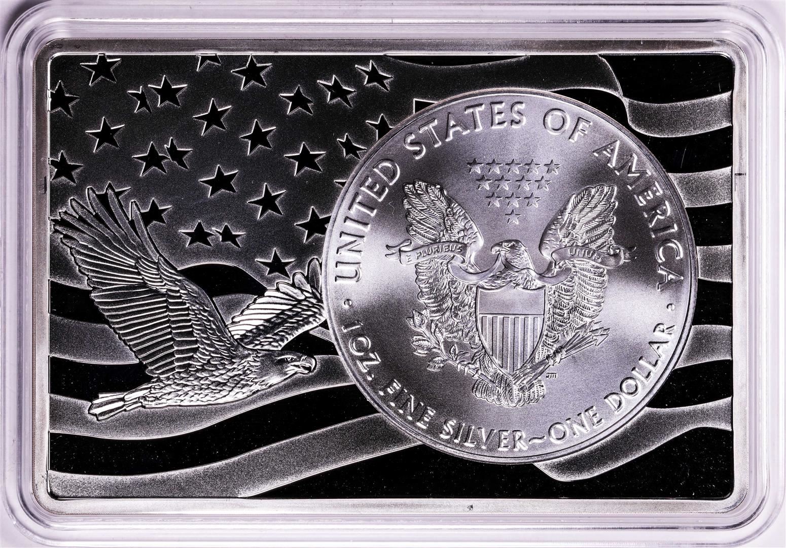 One 2020 $1 American Silver Eagle Coin & 2oz Silver Bar Set.
