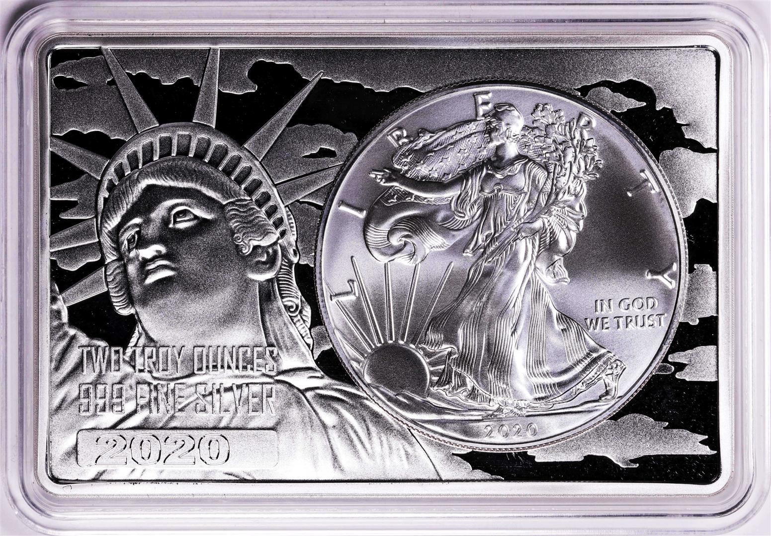 One 2020 $1 American Silver Eagle Coin & 2oz Silver Bar Set.