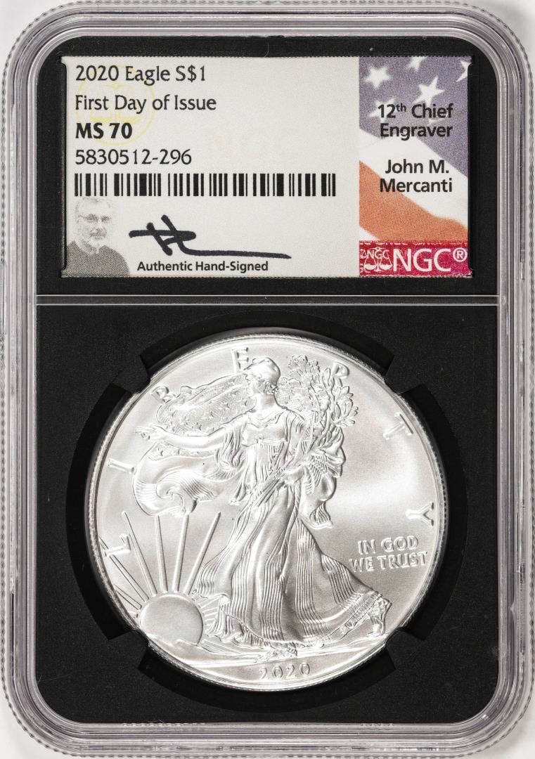 2020 $1 American Silver Eagle Coin NGC MS70 First Day of Issue Mercanti Signature