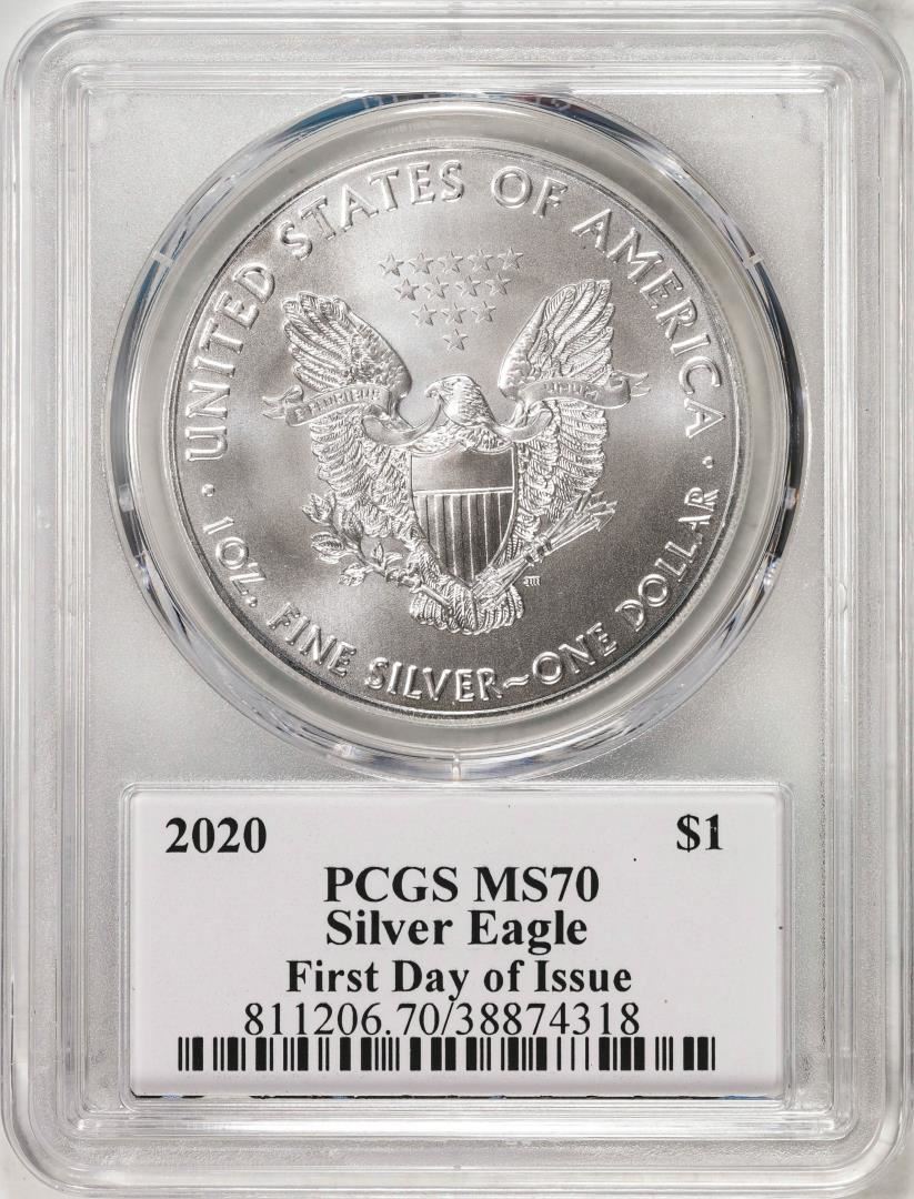 One 2020 $1 American Silver Eagle Coin PCGS MS70 First Day Of Issue Cleveland Signature. PCGS Graded.