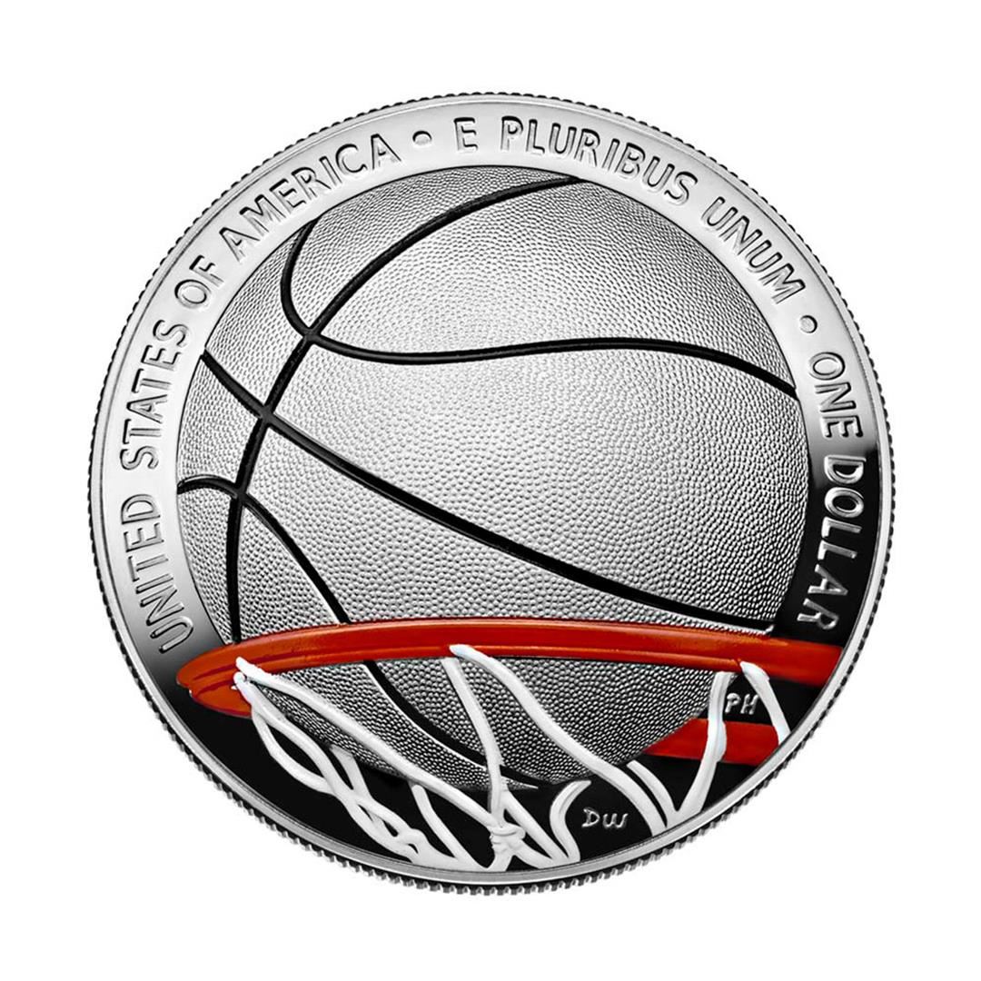 One 2020 $1 Proof Basketball HOF Colorized Commemorative Silver Dollar Coin w/ COA & Box.