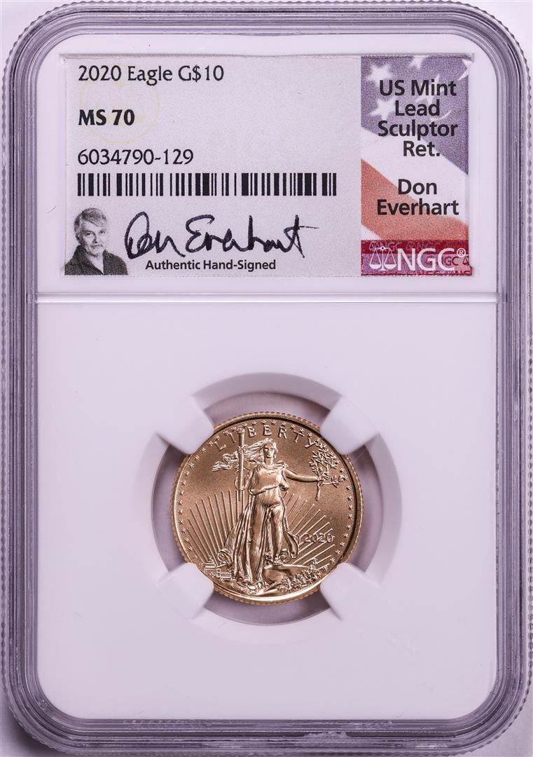 One 2020 $10 American Gold Eagle Coin NGC MS70 Don Everhart Signature. NGC Certified.