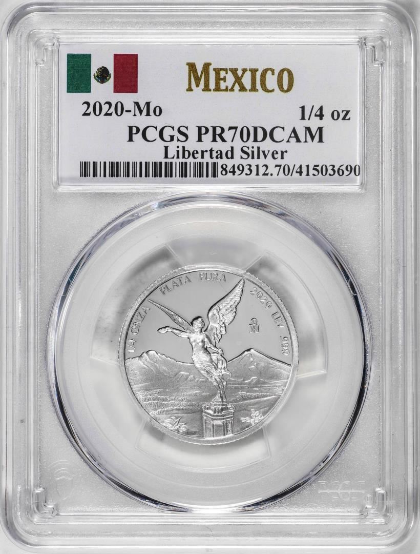 One 2020-Mo Mexico Proof 1/4 oz Silver Libertad Coin PCGS PR70DCAM. PCGS Graded.