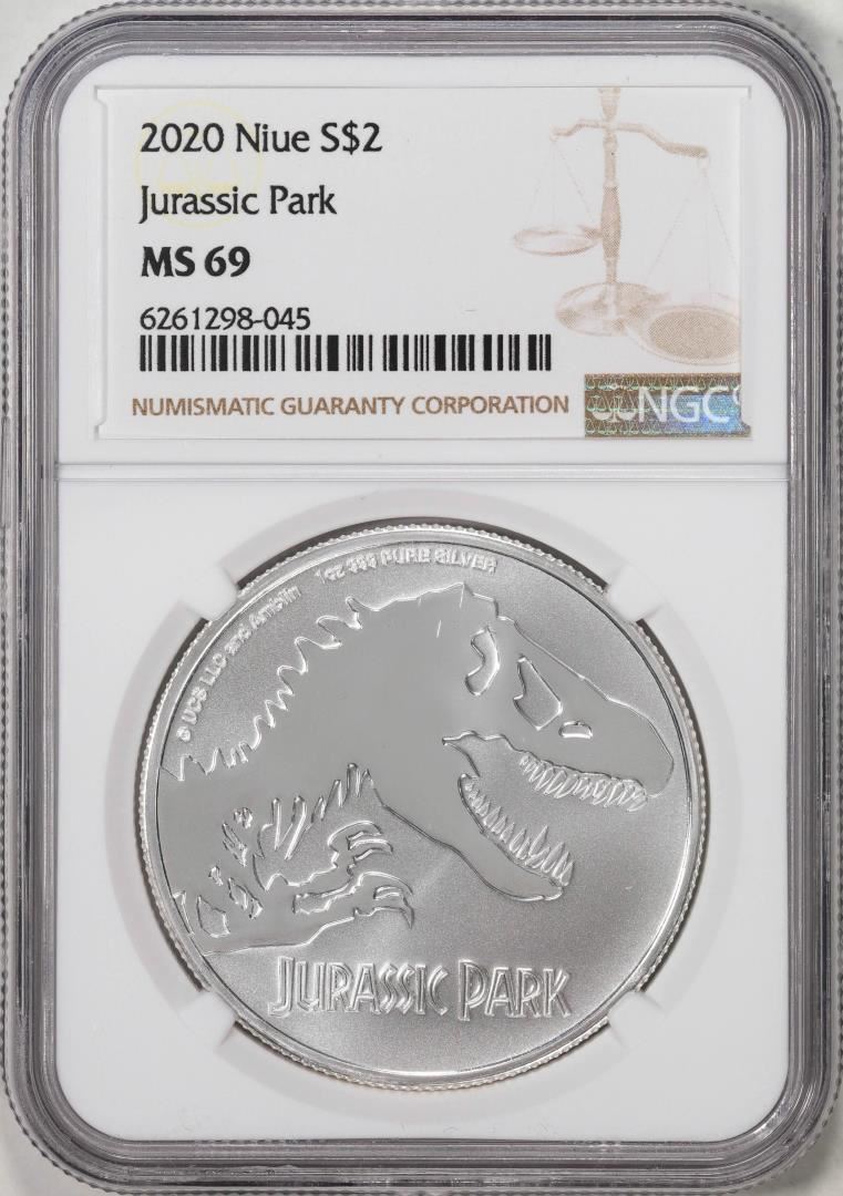 One 2020 Niue $2 Jurassic Park Silver Coin NGC MS69. NGC Certified.