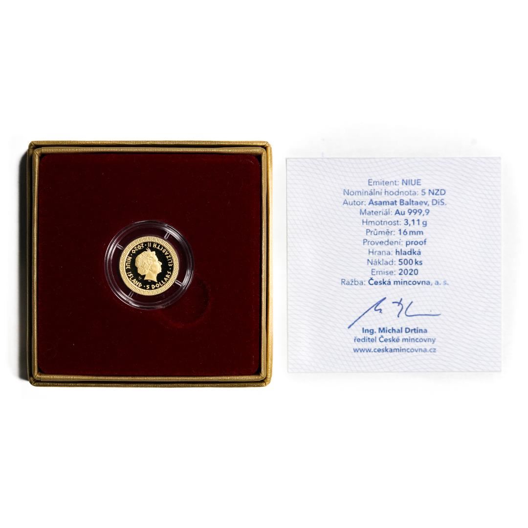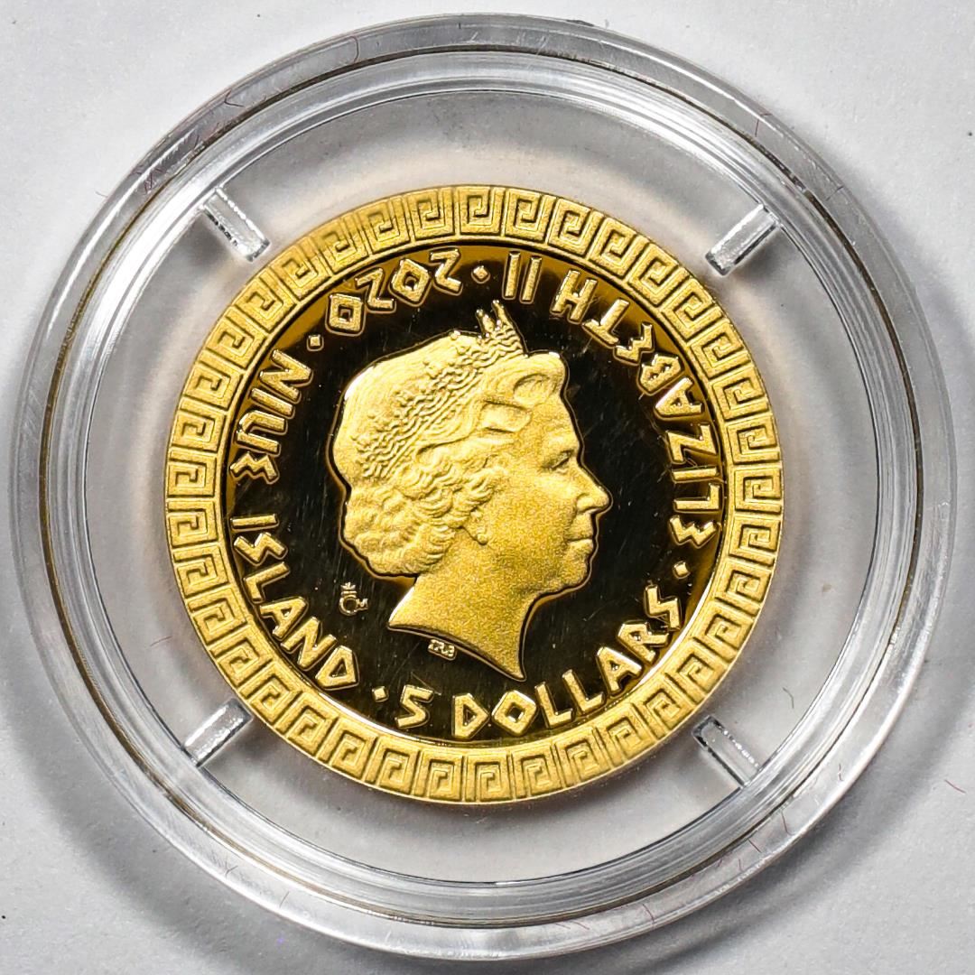 One 2020 Niue $5 Proof Elizabeth II Gold Coin w/Box & COA.
