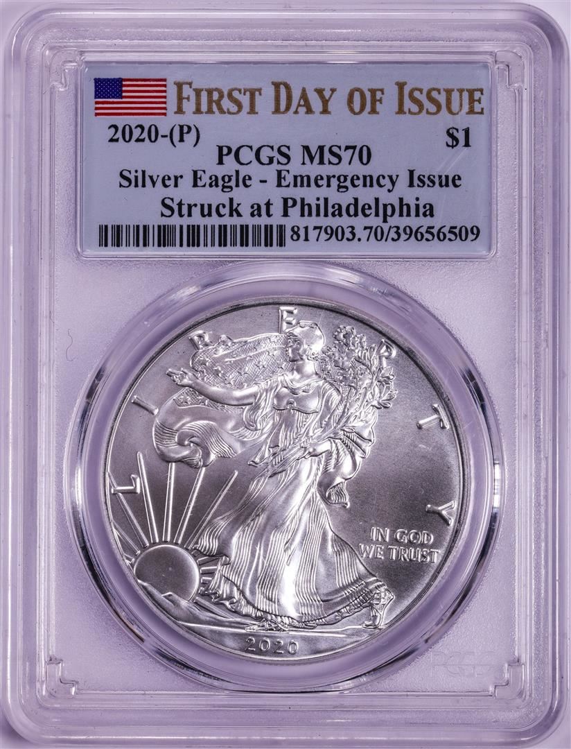 2020-(P) $1 American Silver Eagle Coin PCGS MS70 FDOI Philadelphia Emergency Issue