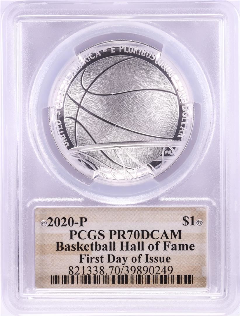 2020-P $1 Basketball Hall of Fame Silver Dollar Coin PCGS PR70DCAM First Day of Issue