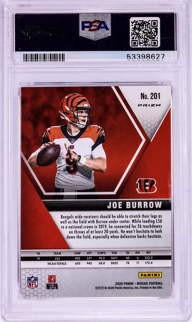 2020 Panini Mosaic Reactive Orange Joe Burrow NFL Card #201 PSA Gem Mint 10