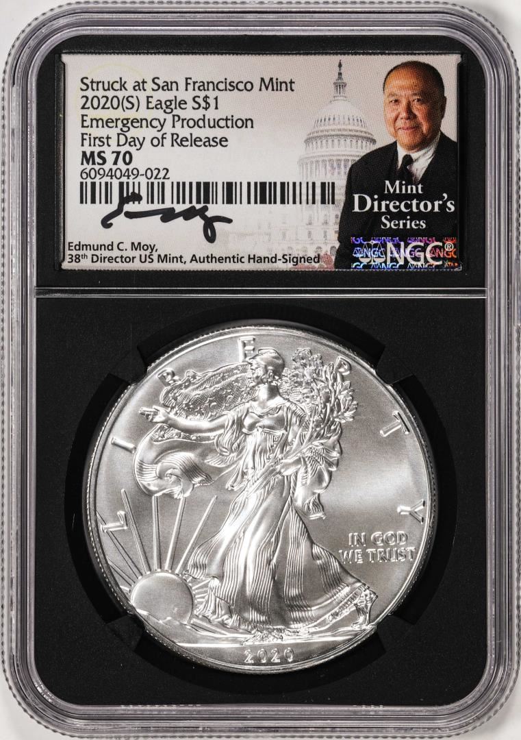 2020(S) $1 American Silver Eagle Coin NGC MS70 First Day of Release Moy Signature