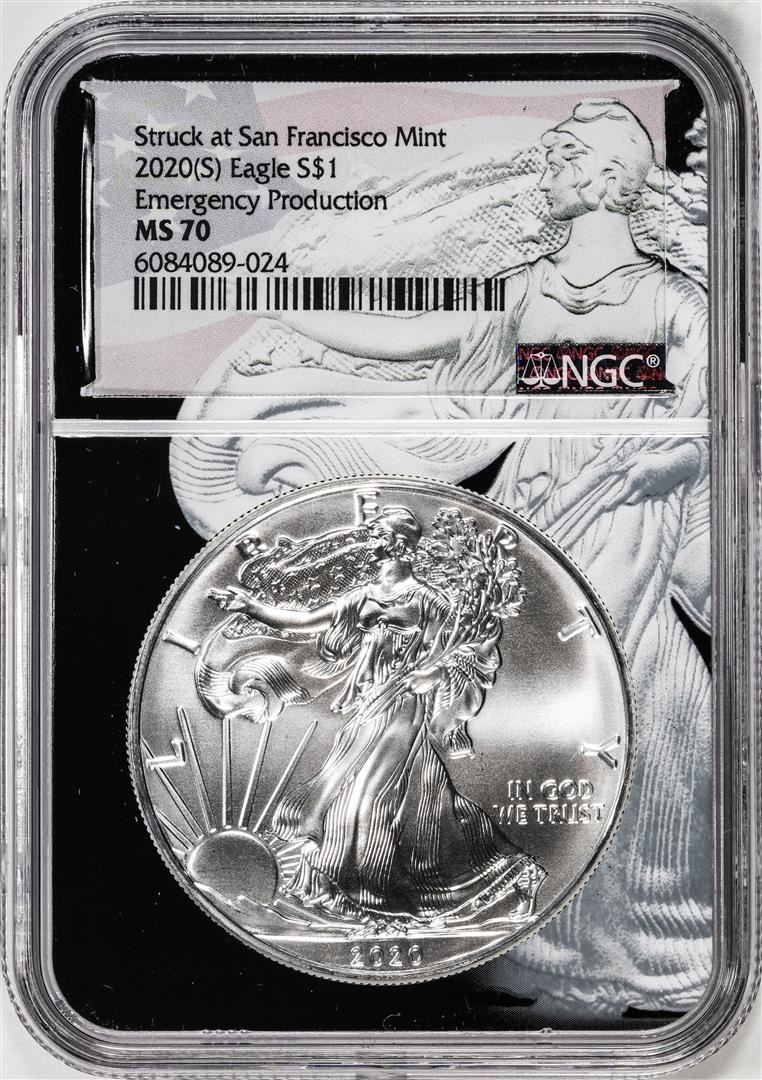2020(S) $1 American Silver Eagle Coin NGC MS70 San Francisco Emergency Production