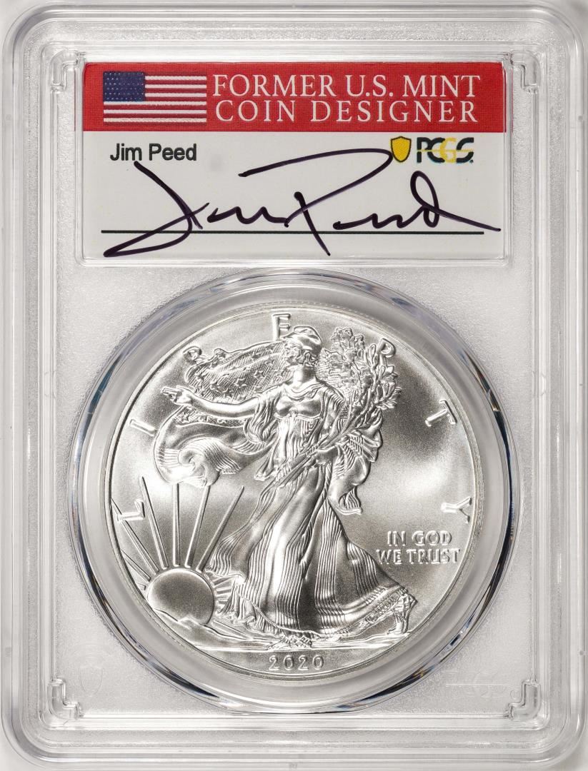 2020-(S) $1 American Silver Eagle Coin PCGS MS70 FDOI S.F. Mint Jim Peed Signature