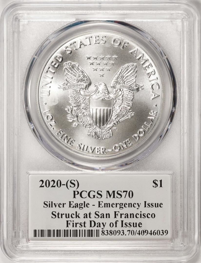 One 2020-(S) $1 American Silver Eagle Coin PCGS MS70 FDOI S.F. Mint Jim Peed Signature. PCGS Graded.