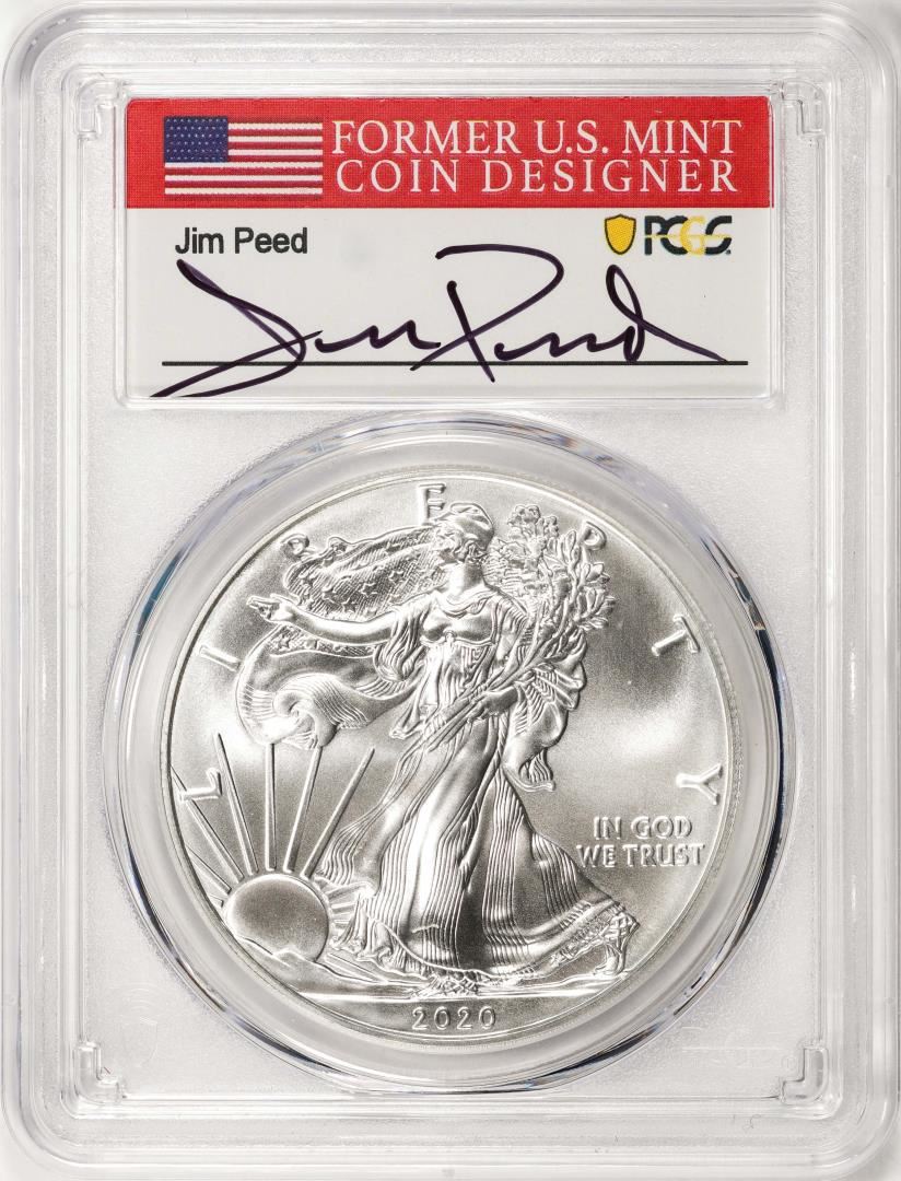 2020-(S) $1 American Silver Eagle Coin PCGS MS70 FDOI S.F. Mint Jim Peed Signature