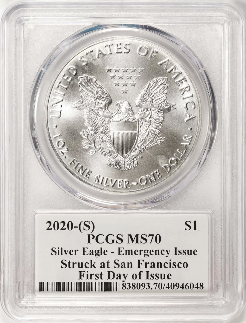 One 2020-(S) $1 American Silver Eagle Coin PCGS MS70 FDOI S.F. Mint Jim Peed Signature. PCGS Graded.