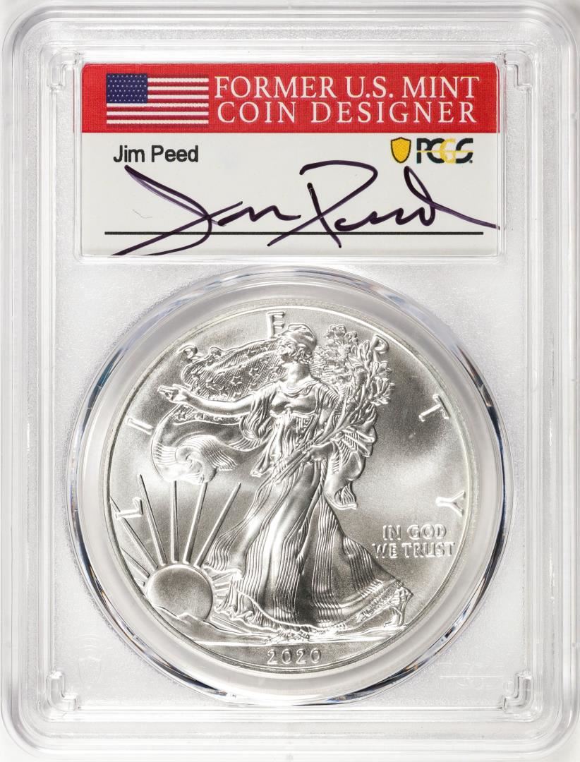 2020-(S) $1 American Silver Eagle Coin PCGS MS70 FDOI S.F. Mint Jim Peed Signature