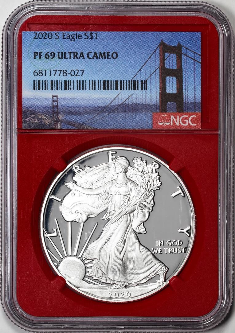 2020-S $1 Proof American Silver Eagle Coin NGC PF69 Ultra Cameo Red Core