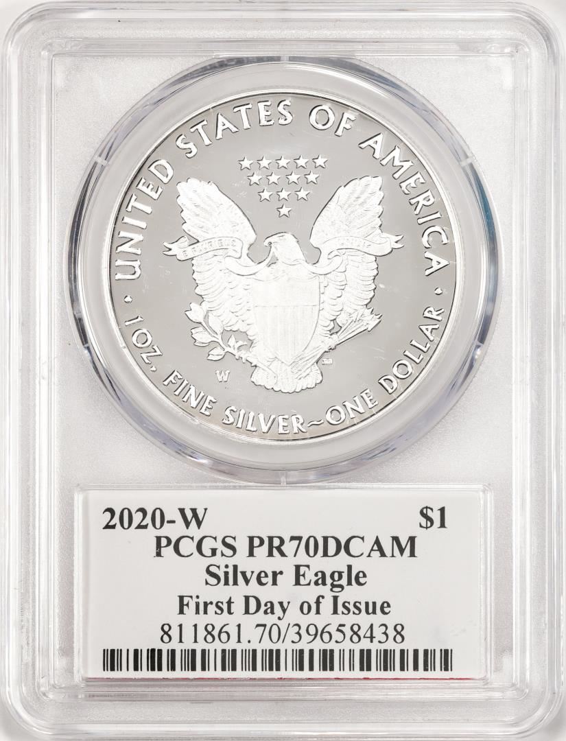 2020-W $1 Proof American Silver Eagle Coin PCGS PR70DCAM FDOI Jim Peed Signed