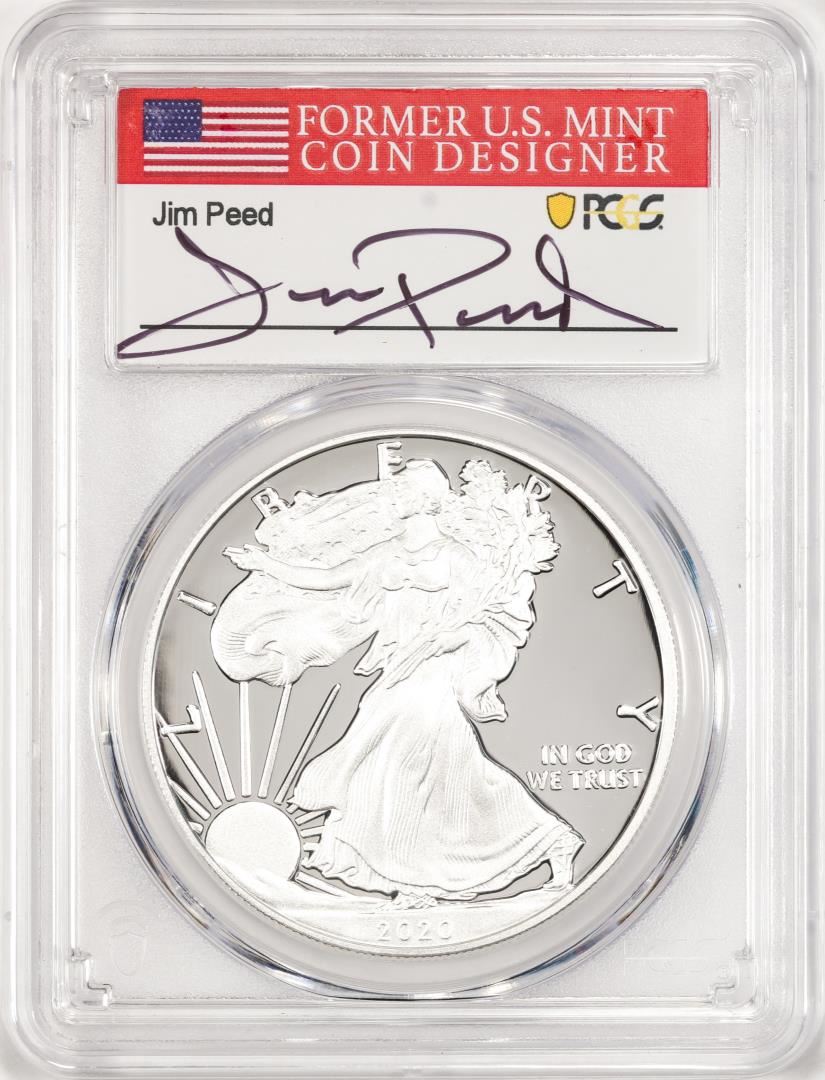 2020-W $1 Proof American Silver Eagle Coin PCGS PR70DCAM FDOI Jim Peed Signed