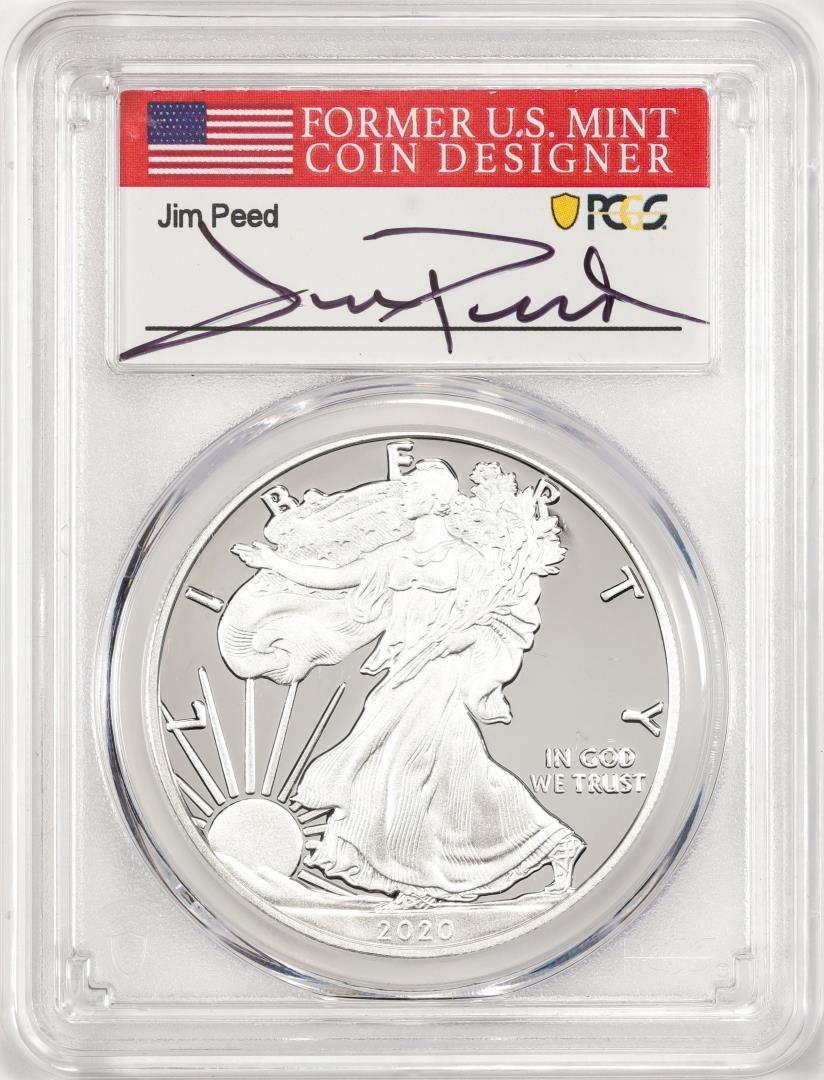 2020-W $1 Proof American Silver Eagle Coin PCGS PR70DCAM FDOI Jim Peed Signed
