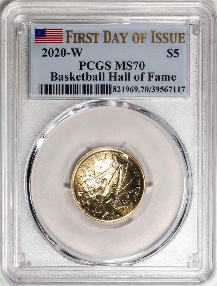 2020-W $5 Basketball Hall of Fame Commemorative Gold Coin PCGS MS70 FDOI