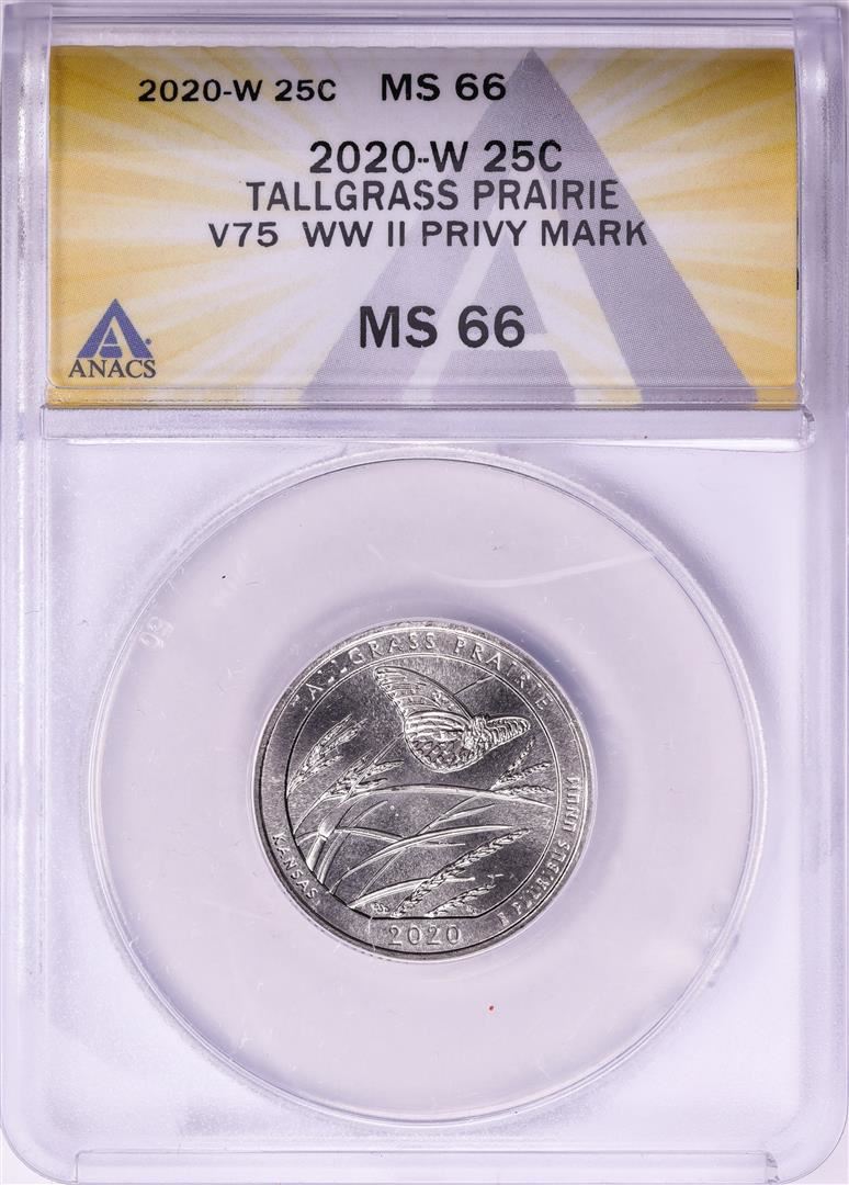 One 2020-W V75 WWII Privy Mark Tallgrass Prairie Quarter Coin ANACS MS66. ANACS Certified.