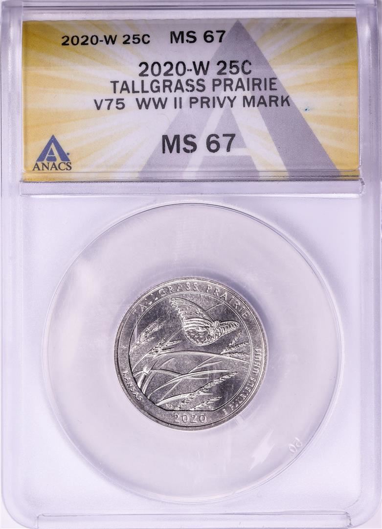 2020-W V75 WWII Privy Mark Tallgrass Prairie Quarter Coin ANACS MS67