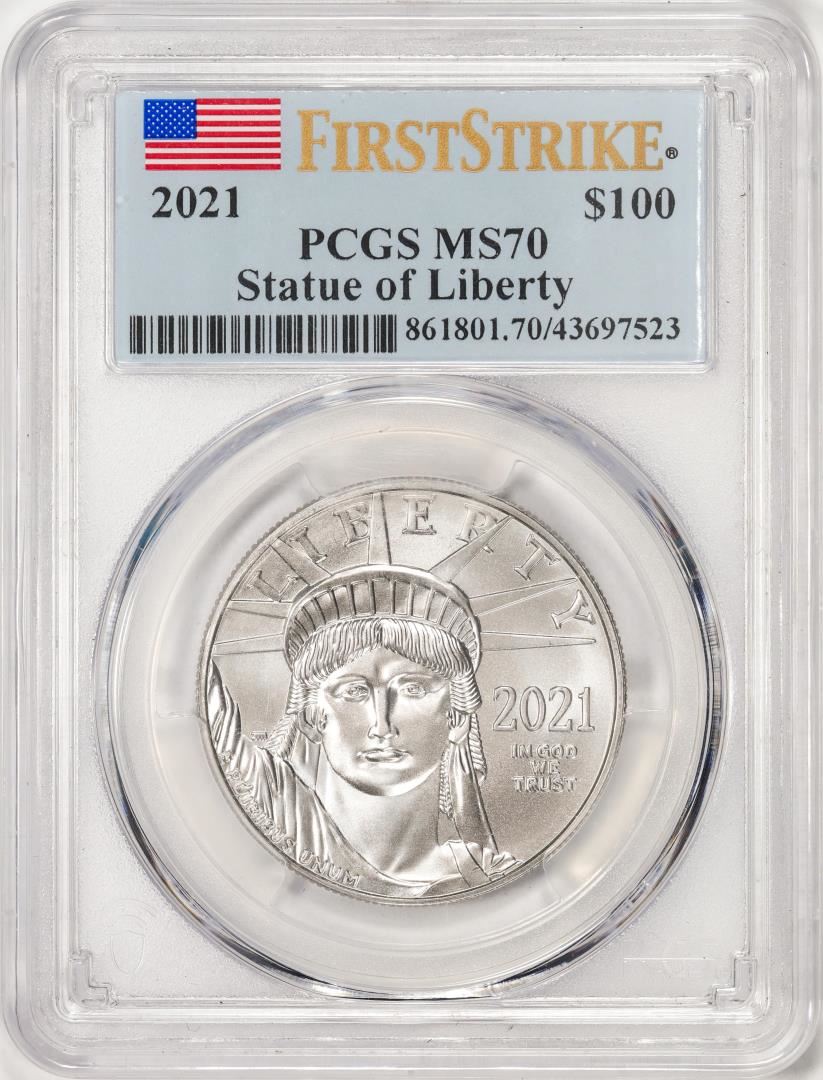 One 2021 $100 Platinum American Eagle Coin PCGS MS70 First Strike. PCGS Graded.