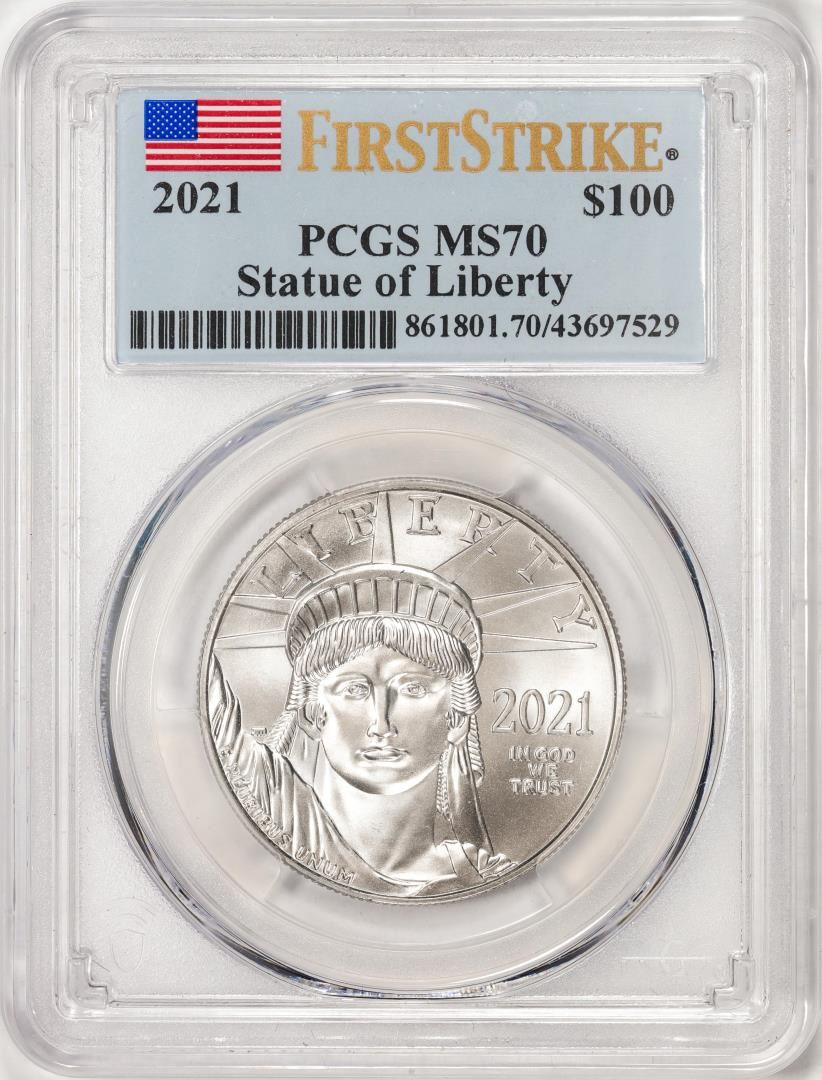 One 2021 $100 Platinum American Eagle Coin PCGS MS70 First Strike. PCGS Graded.