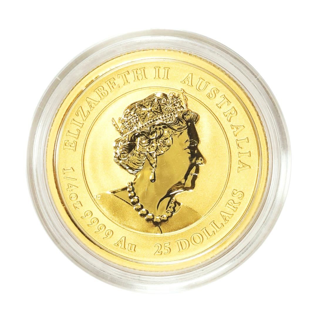 One 2021 $25 Australia Lunar Year of the Ox 1/4 oz. Gold Coin.