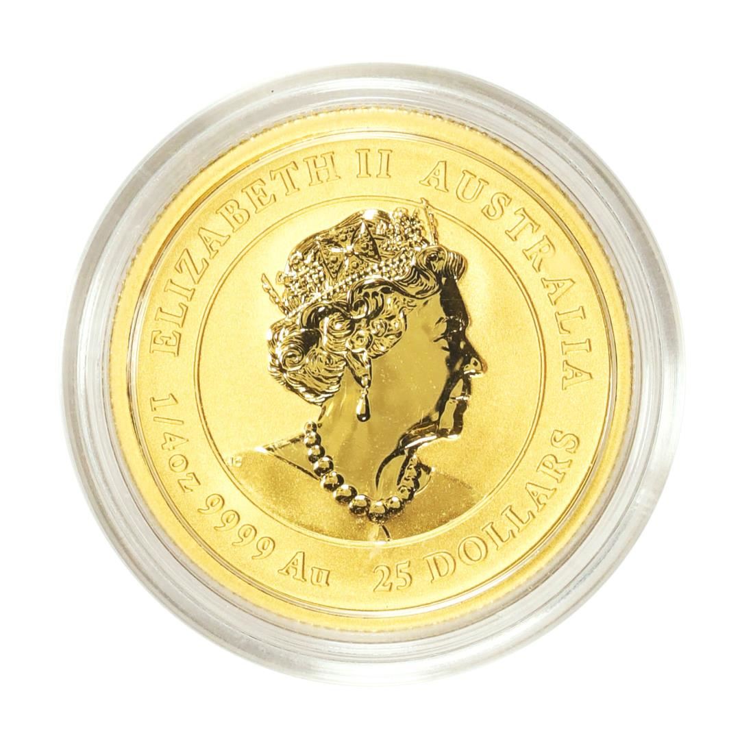 One 2021 $25 Australia Lunar Year of the Ox 1/4 oz. Gold Coin.