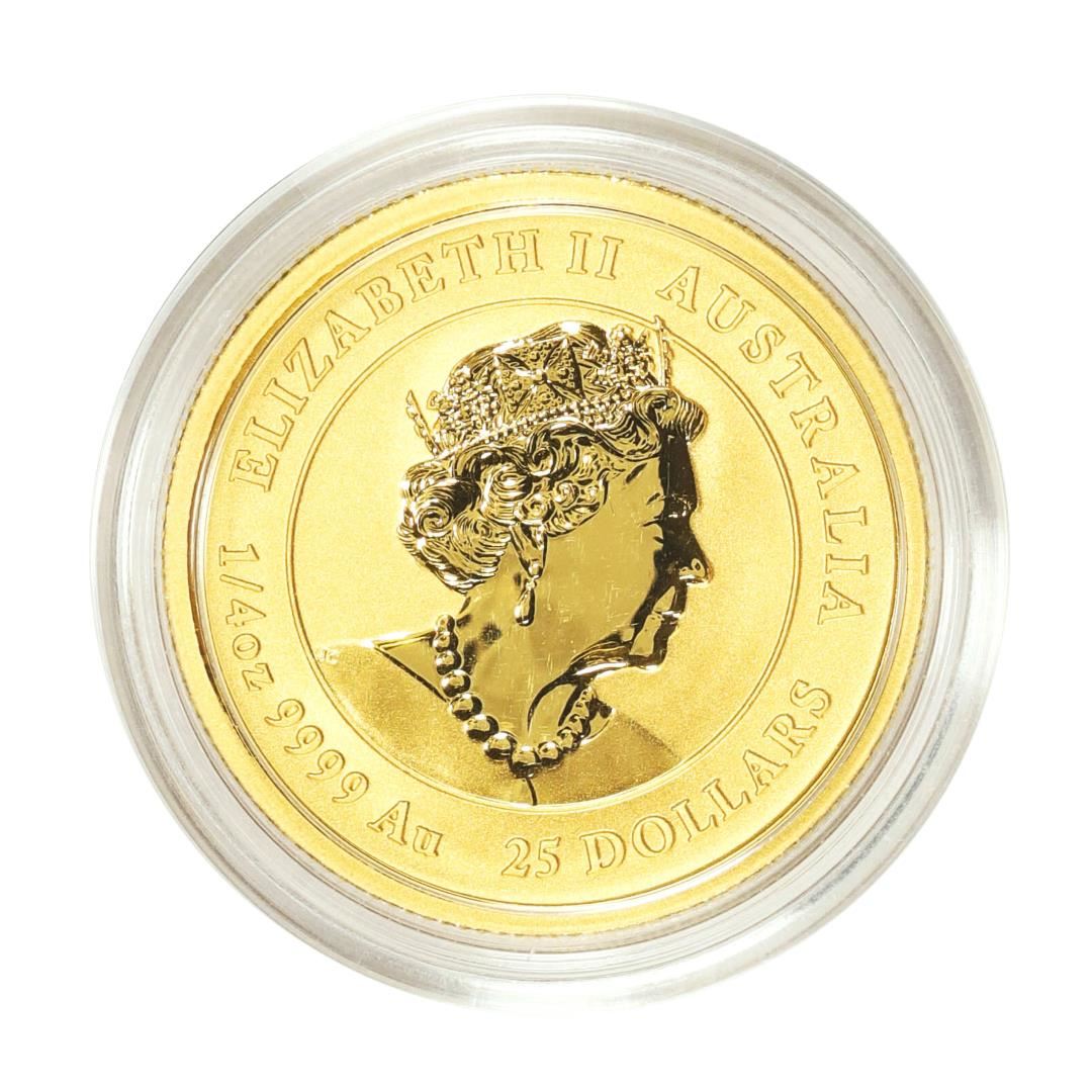 One 2021 $25 Australia Lunar Year of the Ox 1/4 oz. Gold Coin.