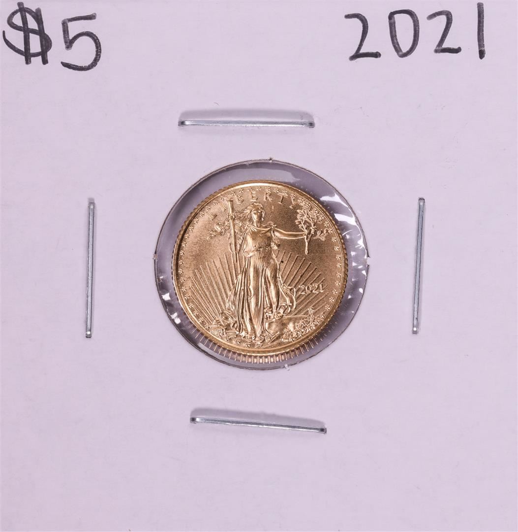 One 2021 $5 American Gold Eagle Coin.