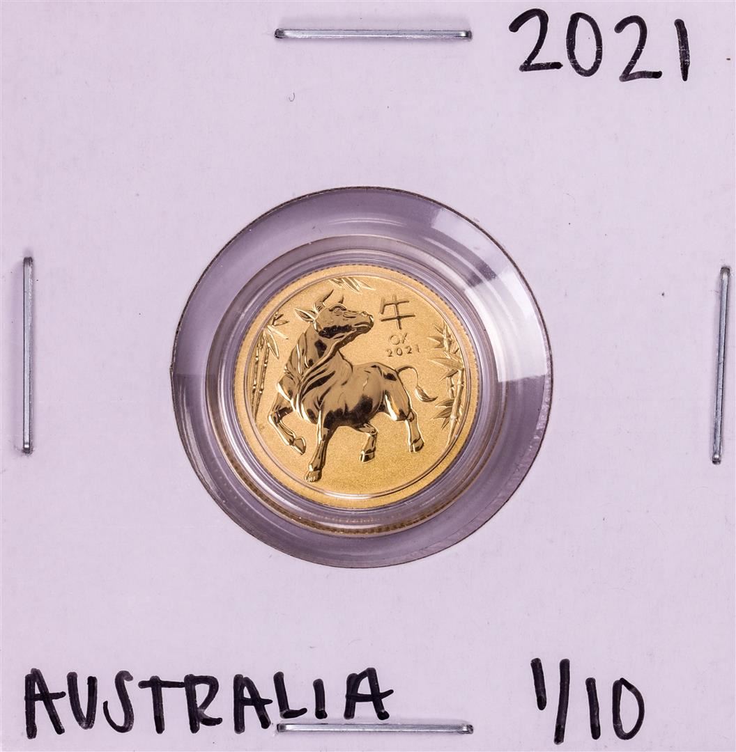 One 2021 Australia $15 Lunar Year of the Ox 1/10 Oz Gold Coin.
