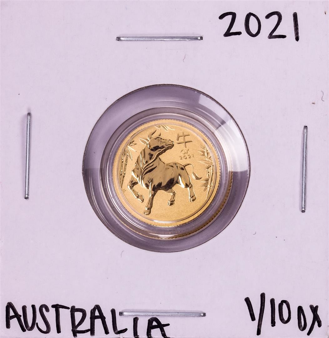 One 2021 Australia $15 Lunar Year of the Ox 1/10 Oz Gold Coin.