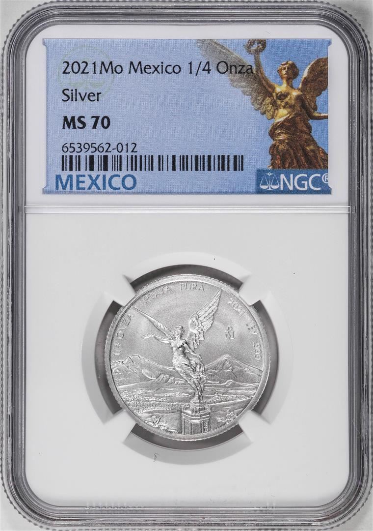 One 2021-Mo Mexico 1/4 oz Silver Libertad Coin NGC MS70. NGC Certified.