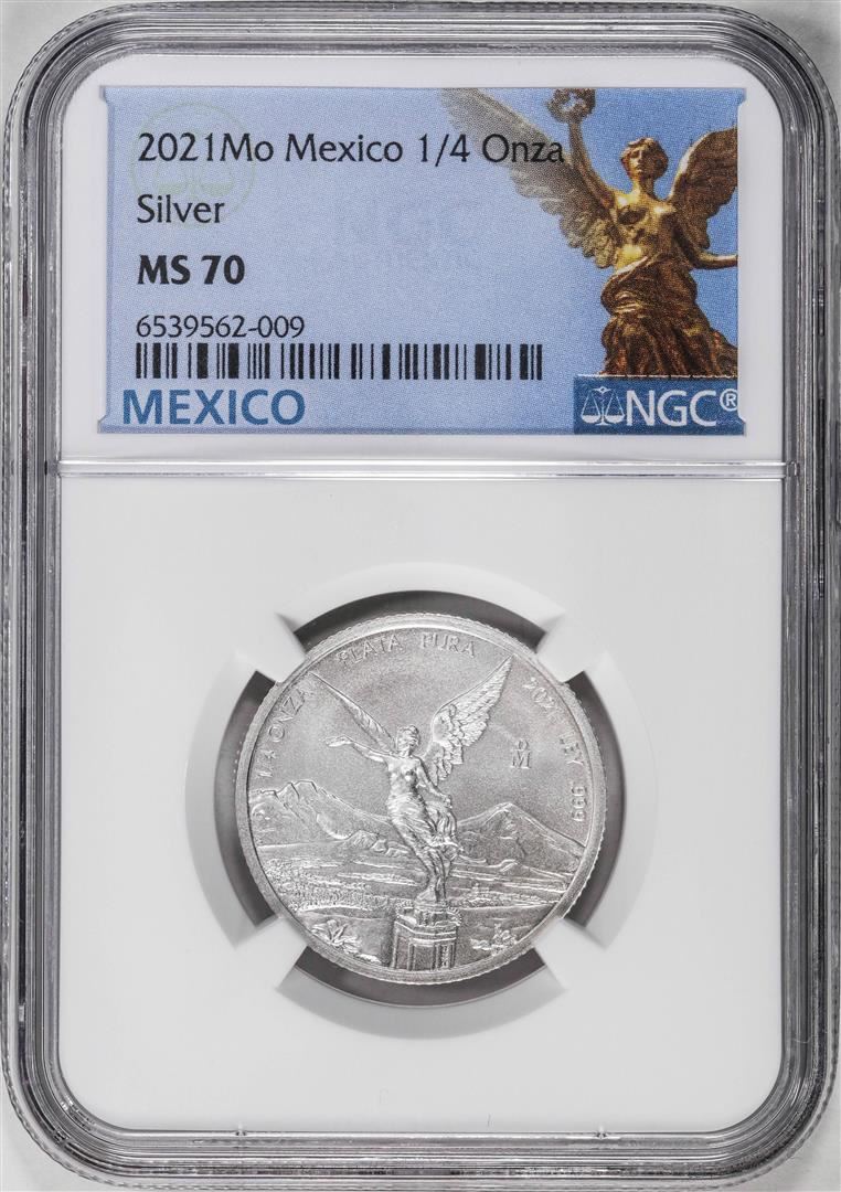 One 2021-Mo Mexico 1/4 oz Silver Libertad Coin NGC MS70. NGC Certified.