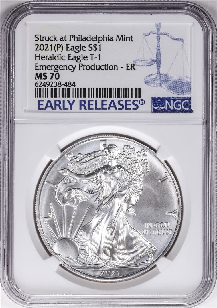 2021(P) T-1 $1 American Silver Eagle Coin NGC MS70 ER Philadelphia Emergency Issue